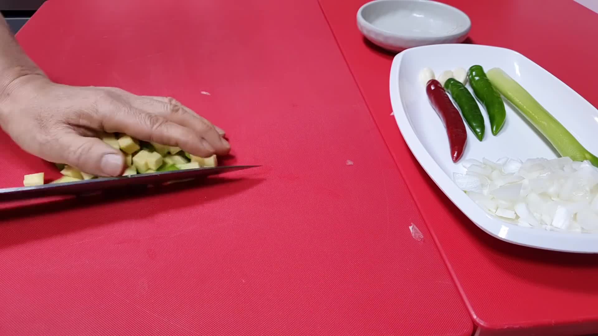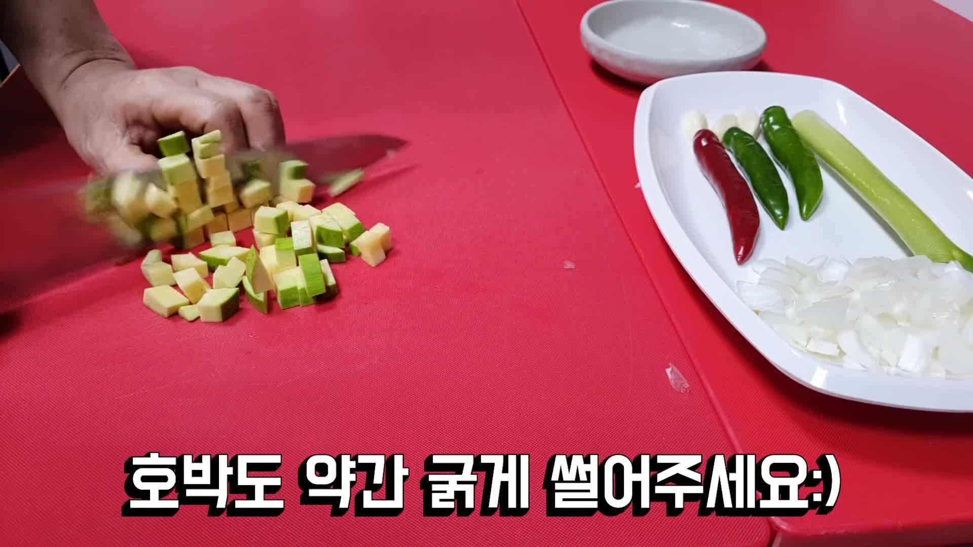 - 감자, 애호박, 양파: 0.5cm 크기의 작은 깍둑썰기